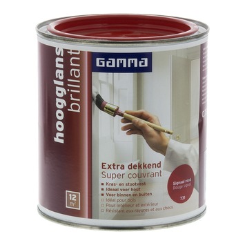 GAMMA Extra Dekkend lak signaal rood hoogglans 750 ml is een extra dekkende, stoot- en krasvaste lak op terpentinebasis. Deze hoogglans verf is geschikt voor decoratieve toepassingen binnenshuis op zowel hout, metaal als kunststof. Het product is ook weersbestendig en te gebruiken voor toepassingen buitenshuis. Eén blik van 750 ml volstaat voor het schilderen van een oppervlakte van 12 m2 er van uitgaande dat in de vereiste dunne lagen wordt geschilderd. Naast de standaard beschikbare kleuren is deze lak in meer dan 30.000 verschillende kleuren te verkrijgen bij onze verfmengbalie in de GAMMA bouwmarkt.