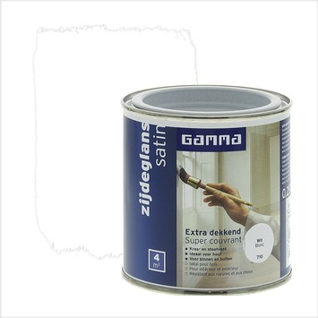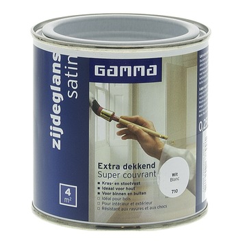GAMMA Extra Dekkend lak wit zijdeglans 250 ml is een extra dekkende, stoot- en krasvaste lak op terpentinebasis. Deze zijdeglans verf is geschikt voor decoratieve toepassingen binnenshuis op zowel hout, metaal als kunststof. Het product is ook weersbestendig en te gebruiken voor toepassingen buitenshuis. Lichte kleuren op terpentinebasis kunnen binnenshuis naar verloop van tijd geel worden op plaatsen die niet veel in contact komen met daglicht. Op deze plaatsen kunt u daarom het beste een lak op waterbasis gebruiken. Eén blik van 250 ml volstaat voor het schilderen van een oppervlakte van 4 m2 er van uitgaande dat in de vereiste dunne lagen wordt geschilderd. Naast de standaard beschikbare kleuren is deze lak in meer dan 30.000 verschillende kleuren te verkrijgen bij onze verfmengbalie in de GAMMA bouwmarkt.