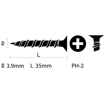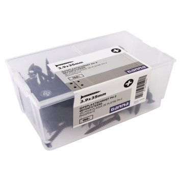 Deze gipsplaatschroef van GAMMA is speciaal gemaakt voor het schroeven in gipsplaten. De schroef heeft draad over de volle lengte en biedt daarmee veel grip in de materie. De zwarte metalen schroeven hebben een afmeting van 3,9 bij 35mm en zijn voorzien van een PH-schroefkop en een Philips-aandrijving. U kunt de schroeven dus indraaien met een kruiskopschroevendraaier. Deze schroeven zijn gefosfateerd, wat zorgt voor een goede hechting van stuc en pleisterwerk. Omdat de kop platverzonken is, zijn de ingedraaide schroeven niet meer zichtbaar. Eén verpakking bevat 150 stuks.