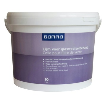 Gebruiksklare lijm voor het verlijmen van glasweefselbehang. De lijm beschikt over een hoge hechtingskracht op gangbare poreuze muurondergronden en wordt geleverd per 5 of 10kg.