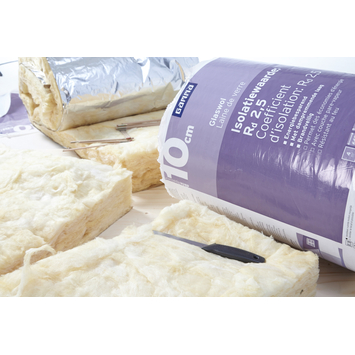 Gamma glaswol zorgt voor warmte- en geluidsisolatie van schuine daken, en voor de binnenzijde van vlieringen. Deze isolatie is eenzijdig voorzien van dampremmende aluminium bekleding, die voorkomt vochtproblemen. Deze Gamma glaswol heeft een isolatiewaarde (Rd) van 2,5 en voldoet daarmee ruimschoots aan het minimale islatieniveau. Hoe hoger de Rd-waarde, des te groter is namelijk de energiebesparing. De glaswoldeken is door zijn lage gewicht en flexibiliteit eenvoudig aan te brengen, ook in minder makkelijk bereikbare ruimtes. Afmetingen: 667x60x10 lengte x breedte x hoogte, goed voor het isoleren van een oppervlakte van 4,0 m². Let op: draag bij het werken met glaswol beschermende kleding, het kan jeuk veroorzaken.