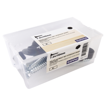 Golfplaten bevestigt u stevig met golfplaatbouten. De GAMMA-golfplaatbout met afmetingen van 7.0x110mm, verpakt per 8 stuks, is verzinkt en heeft een zwarte afdekdop. Dankzij deze dop zorgt de golfplaatbout voor een waterdichte afwerking. Wanneer u met golfplaten en deze verzinkte golfplaatbouten een dak maakt, voorkomt de waterdichte afwerking lekkages. Met de 8 golfplaatbouten van 7.0mm breed en 110mm lang monteert u golfplaten op een houten constructie. De verzinkte golfplaatbout is roestbestendig. Zo realiseert u met golfplaten en de golfplaatbouten met zwarte dop van GAMMA een onderhoudsvrij en solide dak of windscherm.