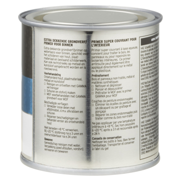 De GAMMA grondverf ED 250 ml wit is een prima basis voor goed schilderwerk binnenshuis. Je beschermt het houtwerk, plaatmateriaal, bestaand schilderwerk en voorbehandeld metaal binnenshuis optimaal door de ondergrond voor te behandelen met deze extra dekkende grondverf. Door het gebruik van GAMMA grondverf op waterbasis hecht de afwerklaag beter en je krijgt een mooier eindresultaat met een goede en egale dekking. Het is een watergedragen verf, makkelijk schuurbaar en geurarm en daardoor de ideale grondverf voor al het houtwerk binnenshuis. Het blik heeft een inhoud van 250 milliliter dit is voldoende voor een oppervlakte van ongeveer 3 m². De grondverf is na 1 uur stofdroog en na 6 uur overschilderbaar. De verf kan je het beste verwerken bij een temperatuur tussen de 8 en 25°C. Werk het liefst bij daglicht om geen stukjes oppervlak te missen. Schilder hout altijd in de richting van de houtnerf. De grondverf is eenvoudig aan te brengen met een kwast of lakroller voor verf op waterbasis. Deze koop je bij de dichtstbijzijnde GAMMA of via de webshop.