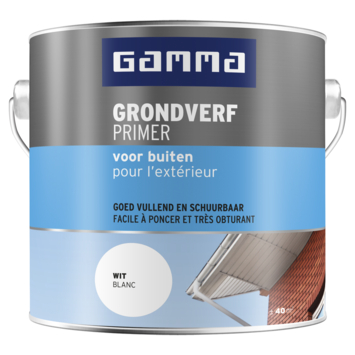 De GAMMA grondverf 2,5 L wit is een uitstekende basis voor mooi en kwalitatief goed schilderwerk buitenshuis. Je beschermt het houtwerk, plaatmateriaal, bestaand schilderwerk en voorbehandeld metaal buitenshuis optimaal door de ondergrond voor te behandelen met deze grondverf. Door het gebruik van GAMMA grondverf op terpetinebasis hecht de afwerklaag beter en je krijgt een mooier eindresultaat met een goede en egale dekking. Het is een terpetinegedragen verf, makkelijk schuurbaar en goed vullend, daardoor is dit de ideale grondverf voor al het houtwerk buitenshuis.