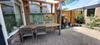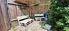 Na het plaatsen van een nieuw stuk schutting heb ik het oude gedeelte onder de terrasoverkapping de kleur gausty green gegeven, net als de kleur van de muur binnen. Toen ook 2 palletstoelen die kleur gegeven, want ik had wat over.