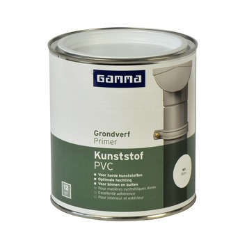 GAMMA grondverf kunststof wit 750 ml op terpentinebasis zorgt voor een optimale vulling en hechting op harde kunststoffen zoals bij kunststof keukendeuren, schroten, kozijnen en rolluiken. Deze grondverf is geschikt voor gebruik zowel binnenshuis als buitenshuis. Eén blik van 750 ml volstaat voor het schilderen van een oppervlakte van 12 m2. De GAMMA grondverf kunststof wit is met name ideaal voor harde kunststoffen zoals polyester en pvc.