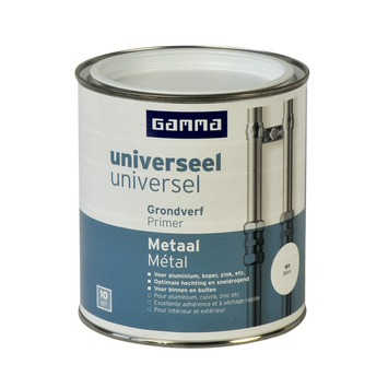 GAMMA grondverf universeel wit 750 ml heeft een multifunctionele werking op diverse ondergronden. Het zorgt er bij hout voor dat de volgende verflagen egaal kunnen worden aangebracht. Bij gebruik op MDF heft het de zuigende werking op. Bij gebruik op metaal en kunststof zorgt het voor een hechtende onderlaag. Deze grondverf is geschikt voor gebruik zowel binnenshuis als buitenshuis. Dit product is op waterbasis wat als voordeel heeft dat het snel droogt en geurarm is. Het is al na 6 uur overschilderbaar met een volgende verflaag. Eén blik van 750 ml volstaat voor het schilderen van een oppervlakte van 10 m2.