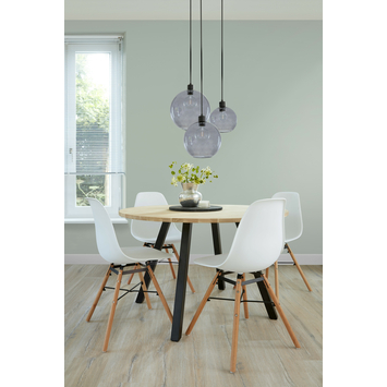 De hanglamp Bram is exclusief voor de E27 lichtbron. De hanglamp heeft 3 lampenkappen in ronde vormen die je elk op eigen hoogte kan hangen. De lamp heeft een zwarte kleur en is gemaakt van metaal en rookglas. De lichtbron heeft 3 lichtpunten en jij kan zelf de lichtkleur kiezen die jij in jouw woonruimte wil. De hanglamp heeft een diameter van 60 cm.