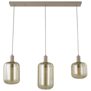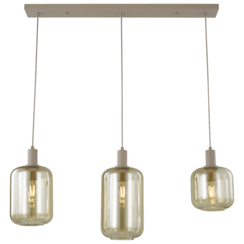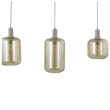 Hanglamp Chantalle van GAMMA is ontworpen om te worden gebruikt met een E27 lichtbron, die apart verkrijgbaar is. Deze lamp beschikt over drie lichtpunten, elk voorzien van lampenkappen van amber kleur glas met een open onderkant, waardoor het licht mooi naar beneden schijnt. Met afmetingen van 130 cm in de hoogte, 94 cm in lengte en een diameter van 18 cm voegt deze Chantalle hanglamp een vleugje elegantie toe aan elke ruimte.