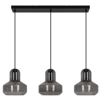 De GAMMA hanglamp Demi met 3 lichtpunten is ontworpen voor gebruik met E27 lampen. De lamp is vervaardigd uit stevig zwart metaal en de drie lampenkappen zijn vervaardigd uit rookglas. Met afmetingen van 120 cm in hoogte, 80 cm in breedte en een diameter van 19,5 cm, voegt deze lamp stijlvolle elegantie toe aan elke ruimte. De lampenkappen zijn aan de onderkant open, waardoor het licht mooi naar beneden schijnt. Het snoer van de lamp kan indien gewenst worden aangepast in lengte.