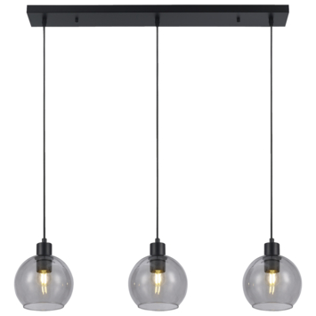 De hanglamp met 3 lichtpunten van GAMMA is ontworpen voor gebruik met een E27 lichtbron. De lamp is vervaardigd uit stevig zwart metaal en de drie lampenkappen zijn vervaardigd uit rookglas. Met afmetingen van 130 cm in hoogte, 87 cm in breedte en een diameter van 17 cm, voegt deze lamp stijlvolle elegantie toe aan elke ruimte. De lampenkappen zijn aan de onderkant open, waardoor het licht mooi naar beneden schijnt. Het snoer van de lamp kan indien gewenst worden aangepast in lengte.