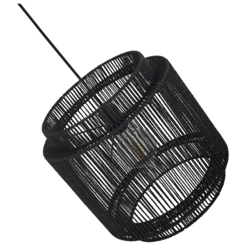 De James XL hanglamp van GAMMA is specifiek ontworpen voor gebruik met een E27 lichtbron, die apart moet worden aangeschaft. Deze lamp is vervaardigd van papier en volledig in het zwart uitgevoerd. Het monteren van de hanglamp aan het plafond is eenvoudig en de lengte ervan is aanpasbaar. Dankzij de open onderkant van de lamp ontstaat een sfeervolle ambiance in de ruimte. Met afmetingen van 130 cm in hoogte en een diameter van 35 cm voegt deze lamp stijl en karakter toe aan de omgeving.