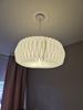 The lamp has a very stylish look that goes well in any living room. The light passes through very well. It is very easy to install and to take out for cleaning. The finishing in the ceiling is seemless for a perfect look.