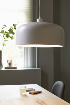 De hanglamp Mees is exclusief voor de E27 lichtbron. De hanglamp is strak en stijlvol. De hanglamp is gemaakt van metaal en heeft een witte kleur. De lampenkap heeft een diameter van 38 cm. En is in hoogte verstelbaar. De hanglamp kan gemakkelijk aan het plafond worden gemonteerd. De lamp wordt verkocht zonder lichtbron en jij kunt zelf de lichtkleur kiezen die jij in jouw woonruimte wil.