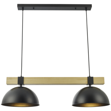 De hanglamp Michiel is exclusief voor de E27 lichtbron. De hanglamp heeft 2 lichtpunten die elk een lampenkap hebben met een diameter van 33 cm. De hanglamp is gemaakt van metaal en heeft een strak design in de kleuren van hout en zwart. De lampenkap hangt eigenlijk aan de houten stang, wat veel sfeer geeft aan de ruimte. De hanglamp wordt geleverd exclusief lichtbron.