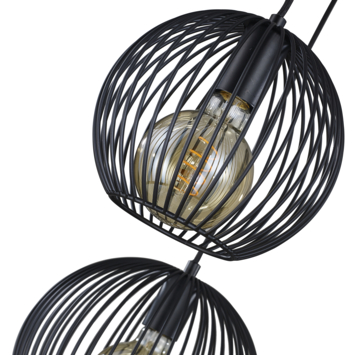 De hanglamp Nikki is exclusief voor de E27 lichtbron. De hanglamp heeft 3 lichtpunten die elk op een andere hoogte hangen. De lampenkappen zijn gemaakt van zwart, metaal met een open design. Door het design van de hanglamp geeft het veel sfeer aan de ruimte. De gehele hanglamp heeft een diameter van 60 cm. De lamp wordt geleverd exclusief lichtbron.