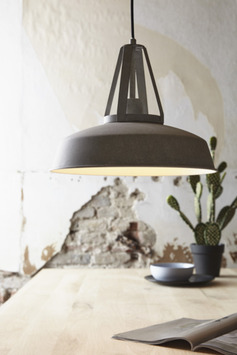 De hanglamp Industry is exclusief voor de E27 lichtbron. De hanglamp heeft een industriële uitstraling waardoor het een stoere uitstraling geeft aan de ruimte. De hanglamp komt in de kleur beton. De lampenkap heeft een diameter van 35 cm. De hanglamp kan gemakkelijk aan het plafond worden gemonteerd en is in hoogte verstelbaar.