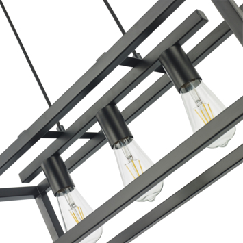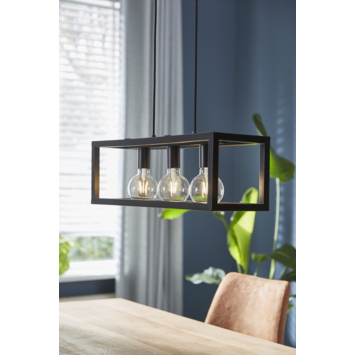 De hanglamp Simone is exclusief voor de E27 lichtbron. De hanglamp is een geheel met 3 lichtpunten. De hanglamp is gemaakt van zwart metaal. De hanglamp heeft een lengte van 20 cm en een breedte van 60 cm. De diepte van de hanglamp is 20 cm. De hanglamp heeft een modern design en wordt exclusief lichtbron geleverd.