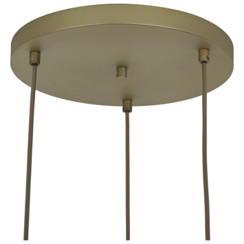 Hanglamp Sofie met meerdere verschillende lampekappen is exclusief voor de E27 lamp. De hanglamp heeft 3 lichtpunten die elk op een andere hoogte hangen. De lampenkappen zijn gemaakt van glas. De bevestigingsplaat van messingkleurig metaal. Door het design van het glas van de hanglamp geeft het een verrassend licht in de ruimte. De gehele hanglamp heeft een diameter van 45 cm. De lamp wordt geleverd exclusief lampen.
