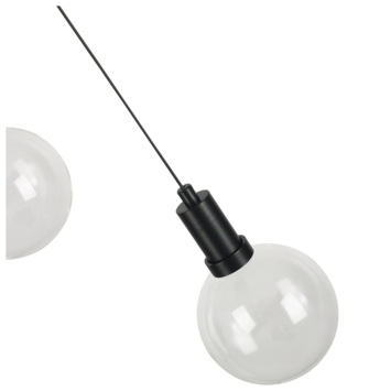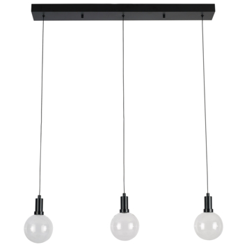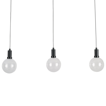 Hanglamp Yves heeft een plafondplaat met 3 lichtpunten. De lamp is vervaardigd uit stevig zwart metaal en de drie lampenkappen zijn vervaardigd uit glas. Met afmetingen van 130 cm in hoogte, 82 cm in breedte en een diameter van 12 cm, voegt deze lamp stijlvolle elegantie toe aan elke ruimte. Het snoer van de lamp kan indien gewenst worden aangepast in hoogte. Het glas van de hanglamp heeft een matkleurige finish.
