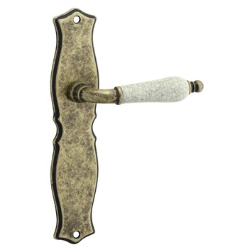 Deurkruk. Type Hasselt antiek brons, op langschild blind (zonder sleutelgat). De deurklink is vast gemonteerd op het schild en is voorzien van een veer waardoor de kruk niet gaat hangen. In deze serie zijn ook de WC63/8, sleutel 56mm en rond rozet beschikbaar. Het is mogelijk om in de bouwmarkt afwijkende WC, sleutel en cilindermaten te bestellen.
