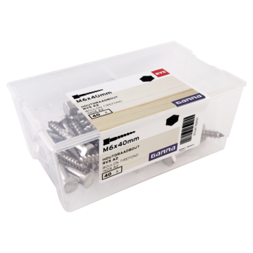 Deze houtdraadbout van GAMMA is gemaakt van roestvrij staal en heeft een zeskantkop en grof draad. De metrische maat van de bout is M6 en de lengte is 40mm. Deze bouten zijn erg geschikt voor het monteren van zware objecten aan betonnen muren in combinatie met de juiste plug. Ook kunt u deze bout bijvoorbeeld gebruiken om buitenlampen en vlagstokhouders vast te maken in bakstenen. In combinatie met de juiste plug zorgt deze bout voor een muurvaste verbinding. Eén verpakking bevat 40 stuks houtdraadbouten.