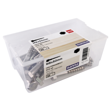 Deze houtdraadbout van GAMMA is gemaakt van roestvrij staal en heeft een zeskantkop en grof draad. De metrische maat van de bout is M8 en de lengte is 50mm. Deze bouten zijn erg geschikt voor het monteren van zware objecten aan betonnen muren in combinatie met de juiste plug. Ook kunt u deze bout bijvoorbeeld gebruiken om buitenlampen en vlagstokhouders vast te maken in bakstenen. In combinatie met de juiste plug zorgt deze bout voor een muurvaste verbinding. Eén verpakking bevat 30 stuks houtdraadbouten.