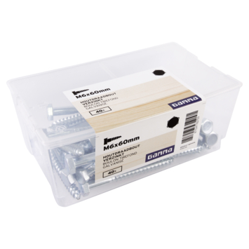 Deze houtdraadbout van GAMMA is gemaakt van verzinkt staal en heeft een zeskantkop en grof draad. De metrische maat van de bout is M6 en de lengte is 60mm. Deze bouten zijn erg geschikt voor het monteren van zware objecten aan betonnen muren in combinatie met de juiste plug. Ook kunt u deze bout bijvoorbeeld gebruiken om buitenlampen en vlagstokhouders vast te maken in bakstenen. In combinatie met de juiste plug zorgt deze bout voor een muurvaste verbinding. Eén verpakking bevat 40 stuks houtdraadbouten.