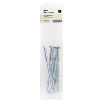 Deze houtdraadbout van GAMMA is gemaakt van verzinkt staal en heeft een zeskantkop en grof draad. De metrische maat van de bout is M8 en de lengte is 120mm. Deze bouten zijn erg geschikt voor het monteren van zware objecten aan betonnen muren in combinatie met de juiste plug. Ook kunt u deze bout bijvoorbeeld gebruiken om buitenlampen en vlagstokhouders vast te maken in bakstenen. In combinatie met de juiste plug zorgt deze bout voor een muurvaste verbinding. Eén verpakking bevat 6 stuks houtdraadbouten.