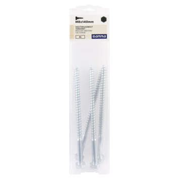 Deze houtdraadbout van GAMMA is gemaakt van verzinkt staal en heeft een zeskantkop en grof draad. De metrische maat van de bout is M8 en de lengte is 140mm. Deze bouten zijn erg geschikt voor het monteren van zware objecten aan betonnen muren in combinatie met de juiste plug. Ook kunt u deze bout bijvoorbeeld gebruiken om buitenlampen en vlagstokhouders vast te maken in bakstenen. In combinatie met de juiste plug zorgt deze bout voor een muurvaste verbinding. Eén verpakking bevat 4 stuks houtdraadbouten.