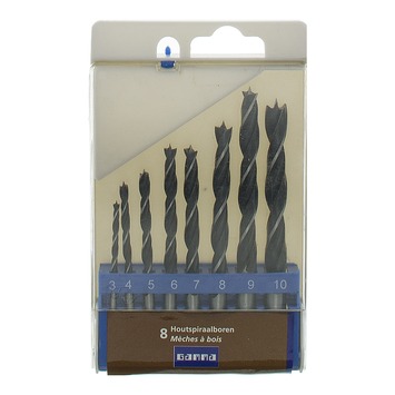Deze houtspiraalborenset van GAMMA bestaat uit 8 delen. De set bevat houtspiraalboren met verschillende afmetingen: 3mm, 4mm, 5mm, 6mm, 7mm, 8mm, 9mm en 10mm, verpakt in een handige cassette. Houtspiraalboren zijn geschikt voor harde en zachte houtsoorten, spaanplaat en multiplex. Een houtboor lijkt veel op een boor voor steen, maar heeft een scherpe centreerpunt aan het einde en vaak 2 voorsnijders. Met de centreerpunt kunt u exacter richten en worden uitschieters voorkomen. Bij het boren wordt eerst langzaam gecentreerd, daarna kan de snelheid hoog opgevoerd worden. De houtspiraalboor is ook geschikt voor sommige andere materialen zoals kunststoffen. Boor hierin met lage snelheid om smelten of verbranden te voorkomen. Met deze houtspiraalboorset heeft u altijd de juiste houtspiraalboor bij de hand.