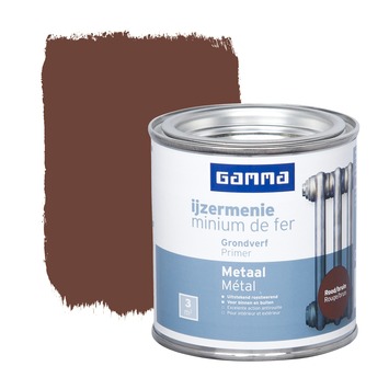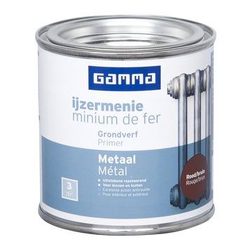 GAMMA ijzermenie roodbruin 250 ml op terpentinebasis is ideaal voor het beschermen van ijzer en staal dat na afwerking slecht bereikbaar wordt of als grondlaag voor metalen die verwarmd worden zoals radiatoren en verwarmingsbuizen. Ook heeft de ijzermenie een roestwerende werking. Eén blik van 250 ml volstaat voor het schilderen van een oppervlakte van 3 m2.