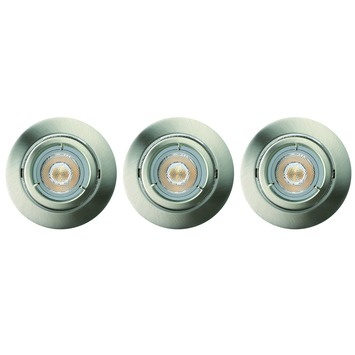 Door de geborsteld stalen rand hebben deze GAMMA inbouwspots LED rond richtbaar 3x5,5 watt staal een strakke uitstraling. Hierdoor passen ze goed in een modern interieur. De inbouwspots worden geleverd inclusief energiezuinige LED van 5,5 watt (vergelijkbaar met een ouderwetse gloeilamp van 40 watt). Hierdoor zijn de spots direct na installatie klaar voor gebruik. Doordat de spots richtbaar zijn kun je de lichtstraal naar wens afstellen, waardoor ze goed te gebruiken zijn als accentverlichting. Kortom, de GAMMA LED-inbouwspots zijn een aangename accentverlichting voor in ieder interieur.