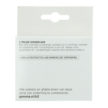 De GAMMA K2 2-Poligeschakelaar Wit is handig in gebruik voor apparaten en voor schakelingen waarbij aarding nodig is. Monteren is eenvoudig dankzij de gebruiksvriendelijke installatiehandleiding en het bijgesloten aansluitschema.
