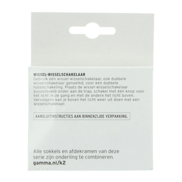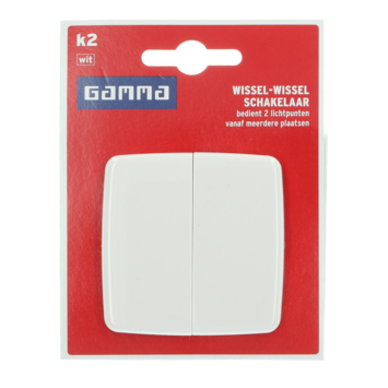 Met de GAMMA K2 Wissel-wisselschakelaar Wit kun je twee lichtpunten afzonderlijk in- en uitschakelen vanaf meerdere plaatsen. Je kunt deze schakelaar ook gebruiken voor het maken van een hotelschakeling. Dit kan bijvoorbeeld handig zijn onder aan de trap. Montage van de schakelaar is eenvoudig dankzij de gebruiksvriendelijke installatiehandleiding en het bijgevoegde aansluitschema. De Wissel-/wisselschakelaar is ook wel bekend als Dubbele wisselschakelaar.