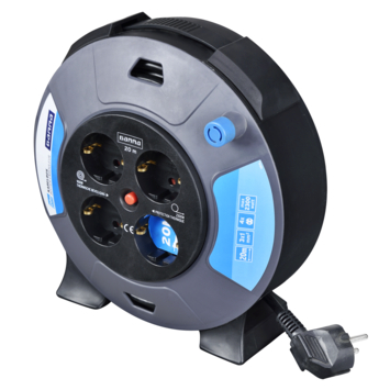 De GAMMA Kabelbox 4-voudig RA 20 Meter Grijs heeft 4 stopcontacten met randaarde en 20 meter lang verlengsnoer. De kabelbox is ideaal voor het aansluiten van elektrische apparaten waarvan het snoer niet toereikend is tot het stopcontact. Met een belastbaar vermogen tot 2300 watt kun je meerdere elektrische apparaten op deze kabelbox aansluiten. De kabelbox is beveiligd tegen overbelasting.