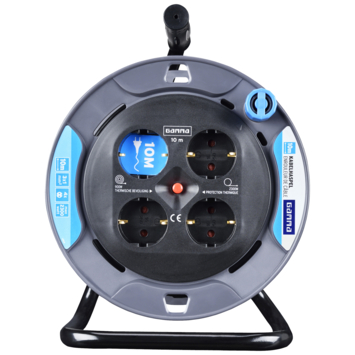De GAMMA Kabelhaspel 4-voudig RA Mini 10 Meter Zwart heeft een 10 meter lang verlengsnoer en biedt de mogelijkheid voor het inpluggen van 4 kabels. Afgerold kan er maximaal vermogen van 2300 Watt worden aangesloten, opgerold maximaal 750 Watt. De kabelhaspel is voorzien van overbelasting beveiliging. Met behulp van de stevige handgreep is het snoer eenvoudig op- en uit te rollen.