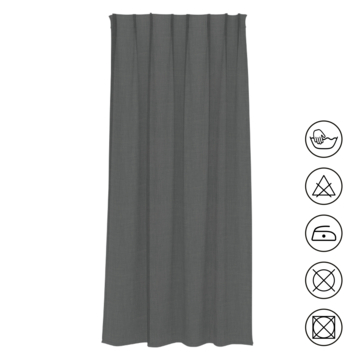 Het kant-en-klaar gordijn lichtdoorlatend donkergrijs (1383) is een kant-en-klaar gordijn met een luxe uitstraling gemaakt van 100% polyester. De stof is ongeplooid 140 cm breed, geplooid tussen de 60 en 80 cm. De lichtdoorlatende stof zorgt voor een diffuse lichtinval in je kamer. Dit kant en klaar gordijn geeft je kamer een warme en sfeervolle uitstraling door de fraaie stof en afwerking.