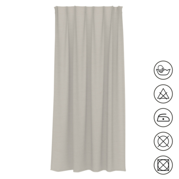 Je kunt dit gordijn met de hand wassen in lauw water en evt. lauw strijken, maar het gordijn is niet geschikt voor de centrifuge en droger.
