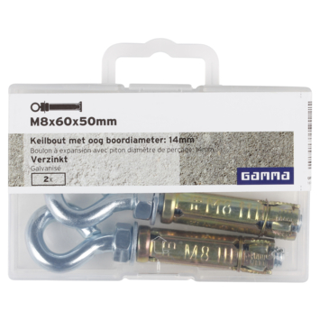 GAMMA keilbout met oog verzinkt M8x60 mm 2 stuks