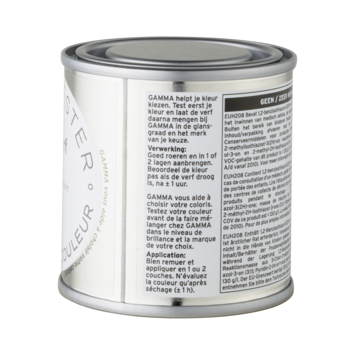 Voordat je grote potten verf in huis haalt, wil je wel zeker zijn van de kleur. Ben je dit nog niet? Maak het jezelf makkelijk met een kleurtester, bijvoorbeeld de GAMMA Kleurtester lak 100ml. Met de kleurtesters van GAMMA kan je de kleur op een klein stukje muur uitproberen, om vervolgens te bekijken wat je ervan vindt. Ben je niet tevreden, dan heb je in ieder geval niet onnodig geld uitgegeven en probeer je gewoon een andere kleur uit. Ben je juist heel blij met het resultaat? Laat de kleur dan mengen met de verf van je favoriete verfmerk. Denk hierbij aan Histor, Flexa of het GAMMA-huismerk. Je vindt de kleurtesters in allerlei glans soorten, onder andere krijtverf, matte of zijdeglans lakverf. Kortom: een slimme manier om de ideale kleur voor je muur te vinden.
