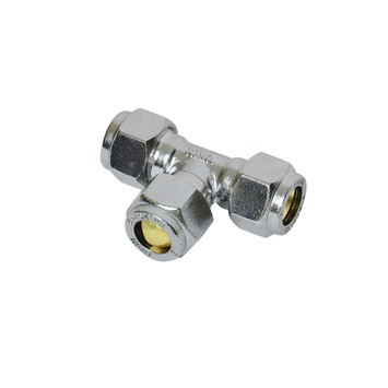 Dit chromen T-stuk kan worden gebruik bij de montage van water- of gasleidingenbuizen zonder te hoeven lassen of solderen. Dit bespaart een heleboel tijd. Een chroom fitting is de mooiste oplossing voor installaties op een zichtlocatie, zoals bij een radiator of fonteintje. Met behulp van de knelkoppeling kan een gas- en waterdichte werking worden verkregen. De GAMMA knelkoppeling chroom T-stuk 10x10x10 mm is onderdeel van het GAMMA assortiment en is TNO getest. Zo weet je zeker dat je met een veilig en kwalitatief product aan de slag gaat.