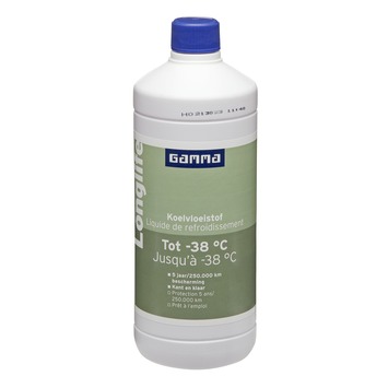 GAMMA koelvloeistof longlife zorgt voor optimale koeling van uw radiator in de zomer en bescherming tegen vorst in de winter. De gebruiksklare vloeistof heeft een gegarandeerde werking van 5 jaar of een gebruik van 250.000km. U beschermt met deze vloeistof uw radiator zelfs wanneer de temperatuur daalt tot 38graden. U koopt deze koelvloeistof bij GAMMA in een flacon met een inhoud van 1liter.