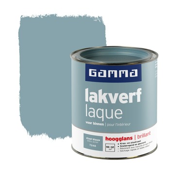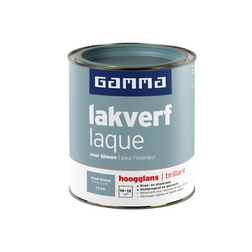 De GAMMA lakverf voor binnen in de kleur staal blauw is ideaal voor het langdurig bescherming van deuren en kozijnen binnenshuis. Deze hoogglanzende lak is op waterbasis. Het product onderscheid zich door een hoge dekkracht, lang glansbehoud, uitstekende vloeiing en een goede kantendekking. Het rendement van één blik van 2,5 liter is tussen de 20 en 25 M2. Op onbehandeld hout is het aan te bevelen om eerst GAMMA Grondverf voor binnen te gebruiken als voorbehandelingsproduct. Daarna volstaan 1 of 2 lagen lakverf voor binnen. De GAMMA lakverf voor binnen is kant en klaar beschikbaar in 13 populaire kleuren. Mocht u de kleur eerst thuis willen testen dan zijn al deze kleuren ook verkrijgbaar in handige 100 ml testerpotjes. De bestaande kleuren niet helemaal naar wens? Dan kan het product speciaal voor u in ieder gewenste kleur gemaakt worden in 750 ml op het GAMMA Kleurmengsysteem. Hier zijn geen extra kosten aan verbonden.