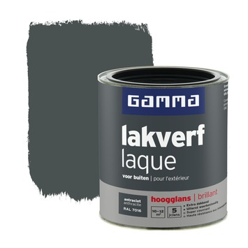 De GAMMA lakverf voor buiten in de kleur antraciet is ideaal voor het langdurig bescherming van deuren en kozijnen buitenshuis. Deze hoogglans lak is op terpentinebasis. Het product onderscheid zich door een hoge dekkracht, lang glansbehoud, uitstekende vloeiing en een goede kantendekking. Het rendement van één blik van 750 ml is tussen de 10 en 12 M2. Op onbehandeld hout is het aan te bevelen om eerst GAMMA Grondverf voor buiten te gebruiken als voorbehandelingsproduct. Daarna volstaan 1 of 2 lagen lakverf voor buiten. De GAMMA lakverf voor buiten is kant en klaar beschikbaar in 13 populaire kleuren. Mocht u de kleur eerst thuis willen testen dan zijn al deze kleuren ook verkrijgbaar in handige 100 ml testerpotjes. De bestaande kleuren niet helemaal naar wens? Dan kan het product speciaal voor u in ieder gewenste kleur gemaakt worden in 750 ml op het GAMMA Kleurmengsysteem. Hier zijn geen extra kosten aan verbonden.