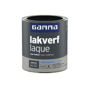 De GAMMA lakverf voor buiten in de kleur antraciet is ideaal voor het langdurig bescherming van deuren en kozijnen buitenshuis. Deze zijdeglanzende lak is op terpentinebasis. Het product onderscheid zich door een hoge dekkracht, lang glansbehoud, uitstekende vloeiing en een goede kantendekking. Het rendement van één blik van 750 ml is tussen de 10 en 12 M2. Op onbehandeld hout is het aan te bevelen om eerst GAMMA Grondverf voor buiten te gebruiken als voorbehandelingsproduct. Daarna volstaan 1 of 2 lagen lakverf voor buiten. De GAMMA lakverf voor buiten is kant en klaar beschikbaar in 13 populaire kleuren. Mocht u de kleur eerst thuis willen teste? Dan zijn al deze kleuren ook verkrijgbaar in handige 100 ml testerpotjes. De bestaande kleuren niet helemaal naar wens? Dan kan het product speciaal voor u in ieder gewenste kleur gemaakt worden in 750 ml op het GAMMA Kleurmengsysteem. Hier zijn geen extra kosten aan verbonden.