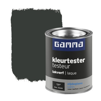 De GAMMA lakverf voor buiten in de kleur zwart is om uw nieuwe kleur te testen en te vergelijken. Deze lakverf voor buiten beschermt uw deuren en kozijnen langdurig. Deze zijdeglanzende lak is op terpentinebasis. Het product onderscheid zich door een hoge dekkracht, lang glansbehoud, uitstekende vloeiing en een goede kantendekking. Op onbehandeld hout is het aan te bevelen om eerst GAMMA Grondverf voor buiten te gebruiken als voorbehandelingsproduct. Daarna volstaan 1 of 2 lagen lakverf voor buiten. De GAMMA lakverf voor buiten is kant en klaar beschikbaar in 13 populaire kleuren. De bestaande kleuren niet helemaal naar wens? Dan kan het product speciaal voor u in ieder gewenste kleur gemaakt worden in 750 ml op het GAMMA Kleurmengsysteem. Hier zijn geen extra kosten aan verbonden.