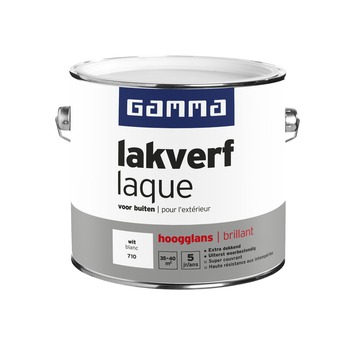 De GAMMA lakverf voor buiten in de kleur wit is ideaal voor het langdurig bescherming van deuren en kozijnen buitenshuis. Deze hoogglans lak is op terpentinebasis. Het product onderscheid zich door een hoge dekkracht, lang glansbehoud, uitstekende vloeiing en een goede kantendekking. Het rendement van één blik van 2,5 liter is tussen de 20 en 25 M2. Op onbehandeld hout is het aan te bevelen om eerst GAMMA Grondverf voor buiten te gebruiken als voorbehandelingsproduct. Daarna volstaan 1 of 2 lagen lakverf voor buiten. De GAMMA lakverf voor buiten is kant en klaar beschikbaar in 13 populaire kleuren. Mocht u de kleur eerst thuis willen testen dan zijn al deze kleuren ook verkrijgbaar in handige 100 ml testerpotjes. De bestaande kleuren niet helemaal naar wens? Dan kan het product speciaal voor u in ieder gewenste kleur gemaakt worden in 750 ml op het GAMMA Kleurmengsysteem. Hier zijn geen extra kosten aan verbonden.