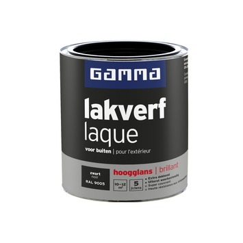 De GAMMA lakverf voor buiten in de kleur zwart is ideaal voor het langdurig bescherming van deuren en kozijnen buitenshuis. Deze hoogglans lak is op terpentinebasis. Het product onderscheid zich door een hoge dekkracht, lang glansbehoud, uitstekende vloeiing en een goede kantendekking. Het rendement van één blik van 750 ml is tussen de 10 en 12 M2. Op onbehandeld hout is het aan te bevelen om eerst GAMMA Grondverf voor buiten te gebruiken als voorbehandelingsproduct. Daarna volstaan 1 of 2 lagen lakverf voor buiten. De GAMMA lakverf voor buiten is kant en klaar beschikbaar in 13 populaire kleuren. Mocht u de kleur eerst thuis willen testen dan zijn al deze kleuren ook verkrijgbaar in handige 100 ml testerpotjes. De bestaande kleuren niet helemaal naar wens? Dan kan het product speciaal voor u in ieder gewenste kleur gemaakt worden in 750 ml op het GAMMA Kleurmengsysteem. Hier zijn geen extra kosten aan verbonden.