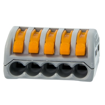 De GAMMA lasklemmen hersluitbaar 5-voudig 5 stuks kunt u gebruiken voor het verbinden van soepele snoeren met massieve draden. De GAMMA lasklemmen zijn van Wago en bijvoorbeeld handig om (plafond)lampen op te hangen. De lasklem heeft een (hersluitbare) bedieningshefboom, zodat u de klem eenvoudig kunt openen om de draden vast en los te maken. Deze lasklemmen zijn 5-voudig, dat betekent dat u maximaal 5 draden van gelijke kleur met elkaar kunt verbinden.